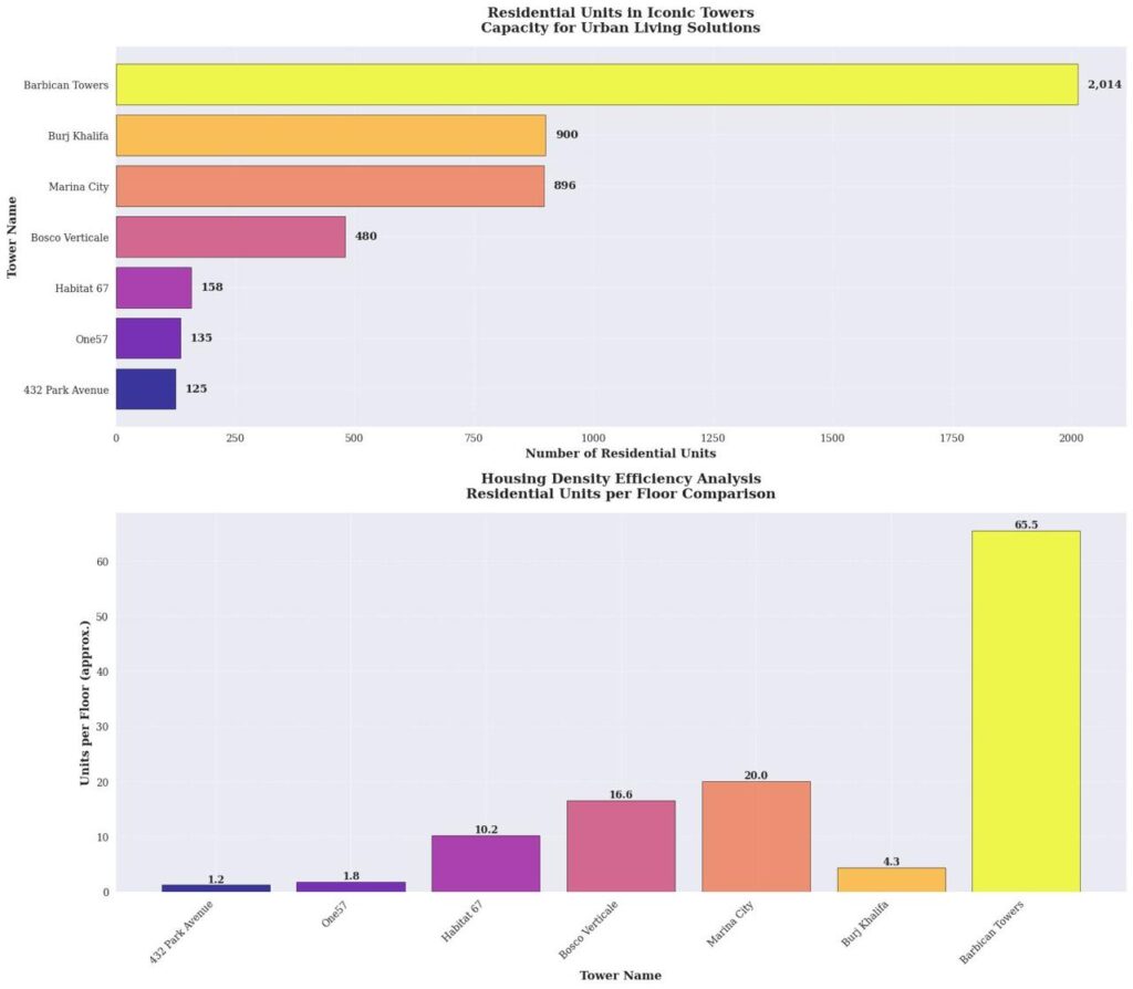 الأبراج الأيقونية تقدم نماذج متنوعة للإسكان، من Barbican Towers في لندن بـ 2,014 وحدة سكنية إلى النماذج الفاخرة مثل 432 Park Avenue بـ 125 وحدة فقط. هذا التنوع يؤكد أن النجاح لا يقتصر على نموذج واحد، وهو ما تعلمته من متابعتي لمختلف المشاريع في دبي.