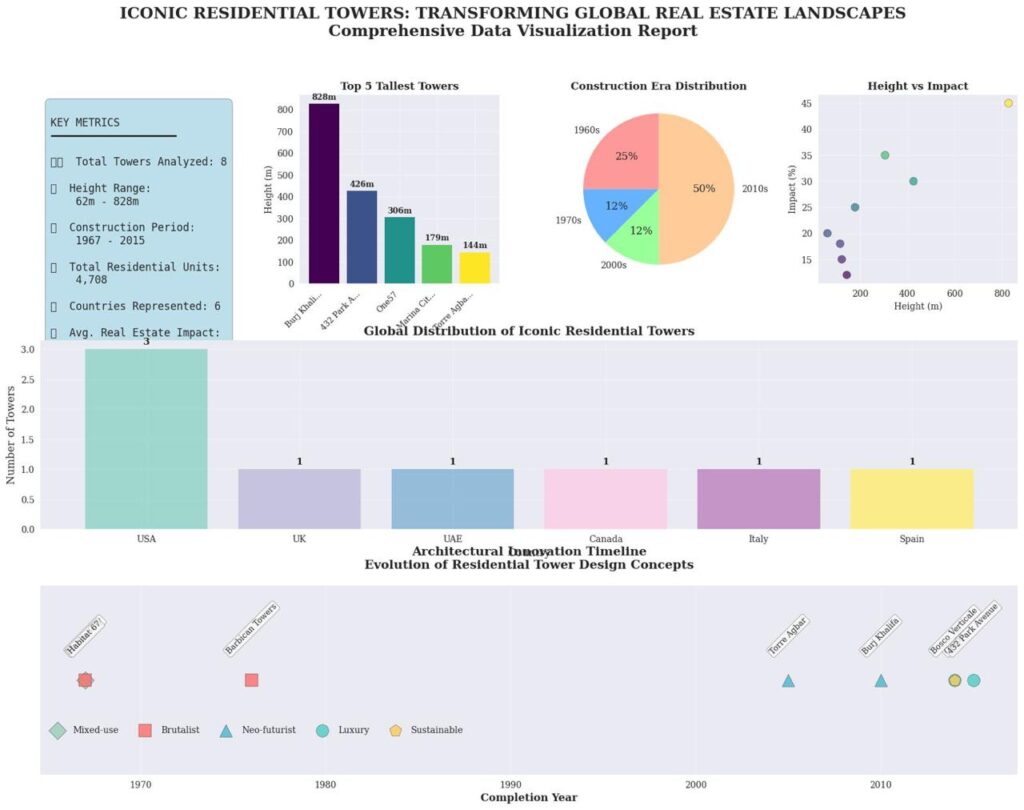 الأبراج السكنية الأيقونية: تحويل المشاهد العقارية العالمية – تقرير تصور البيانات الشامل