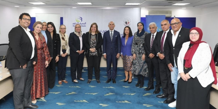 كذا فرج عبد الحميد – نائب العضو المنتدب ونيفين كشميري – نائب العضو المنتدب لقطاعات الاعمال ورحاب عزمي – مساعد العضو المنتدب للتجزئة المصرفية وايمن محمد – رئيس قطاع التمويل العقاري ونخبة من فريق عمل المصرف المتحد.