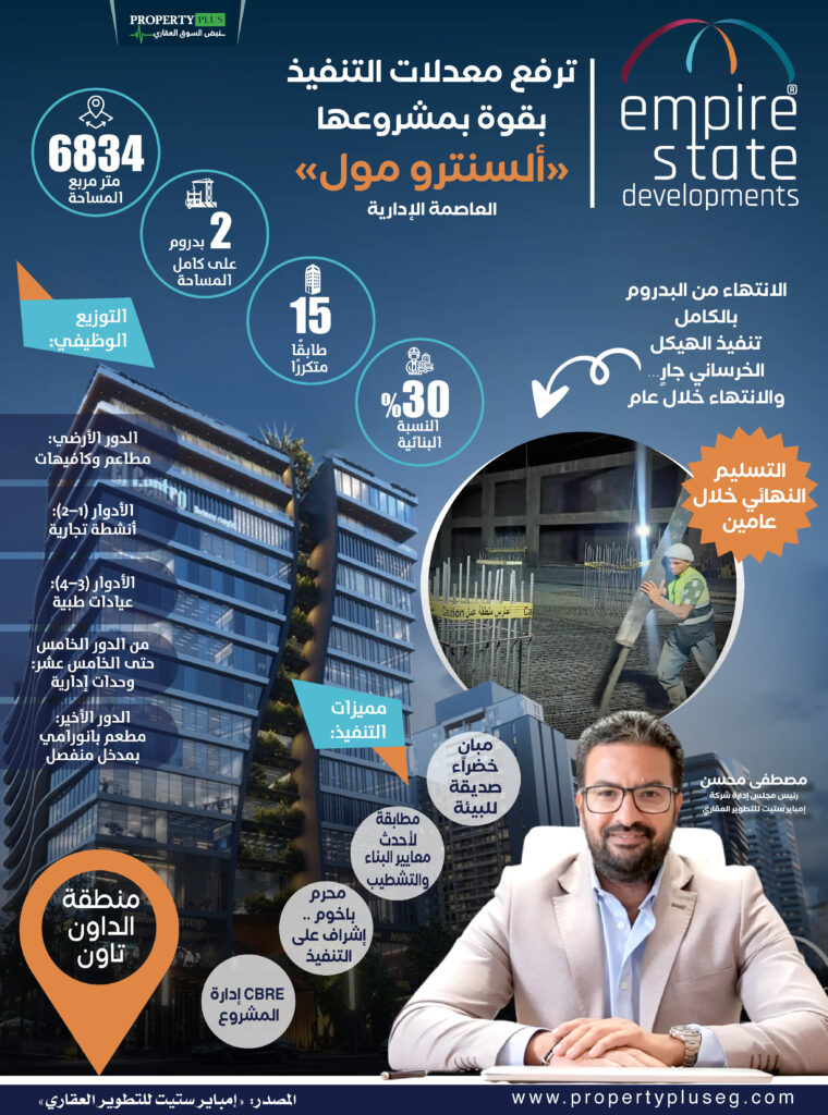 وشهدت مراحل تنفيذ برج 31 North، تقدمًا إنشائيًا، حيث تم تحقيق معدلات تركيب 150 بانل زجاجي أسبوعيًا باستخدام نظام Unitized System، إلى جانب التعاقد مع شركتي “كابر” الصينية و“أوديو” العالمية لتوريد أحدث معدات تنظيف الواجهات الزجاجية وإنارتها. “التفاصيل“ - شهدت القاهرة توقيع عقد شراكة استراتيجي بين شركتي اوسمان جروب للاستثمار (OGI) وYO3 للاستثمار العقاري لتطوير مشروع ضخم في الحي المالي بالعاصمة الإدارية، بإجمالي استثمارات تبلغ 5 مليارات جنيه.