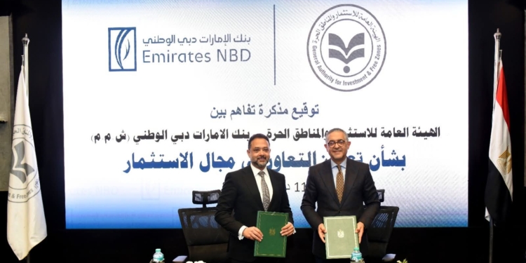 وقعت الهيئة العامة للاستثمار والمناطق الحرة اليوم مذكرة تفاهم مع بنك الإمارات دبي الوطني لتعزيز التعاون في المجال الاستثماري والترويج للفرص المتاحة في مصر على المستويين المحلي والدولي، بما يسهم في دعم المستثمرين وتعزيز مناخ الاستثمار تحقيقًا لأهداف التنمية الاقتصادية. وقد وقع الاتفاقية كل من حسام هيبه، الرئيس التنفيذي للهيئة، و عمرو الشافعي، الرئيس التنفيذي للبنك.