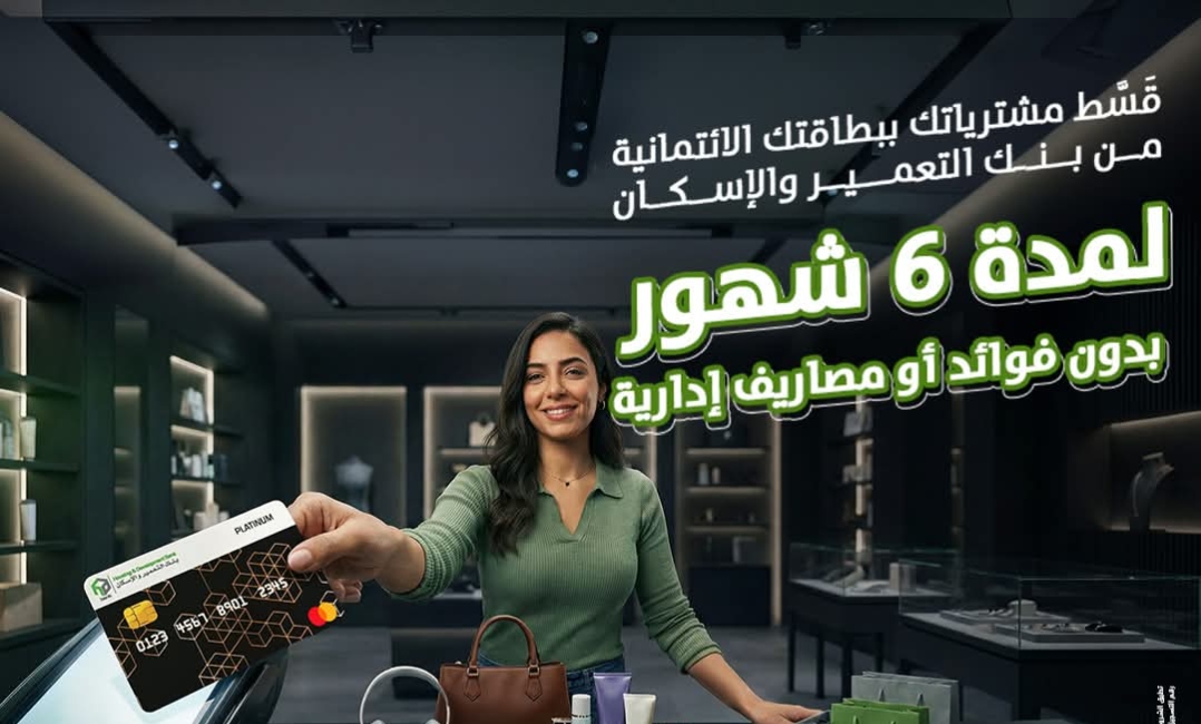 ببطاقات بنك التعمير الائتمانية..قَسَط مشترياتك داخل وخارج مصر على 6 شهور بدون فوائد أو مصاريف إدارية