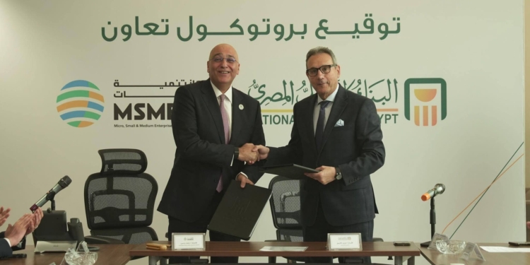وقّع محمد الإتربي الرئيس التنفيذي للبنك الأهلي المصري مذكرة تفاهم مع باسل رحمي الرئيس التنفيذي لجهاز تنمية المشروعات المتوسطة والصغيرة ومتناهية الصغر.