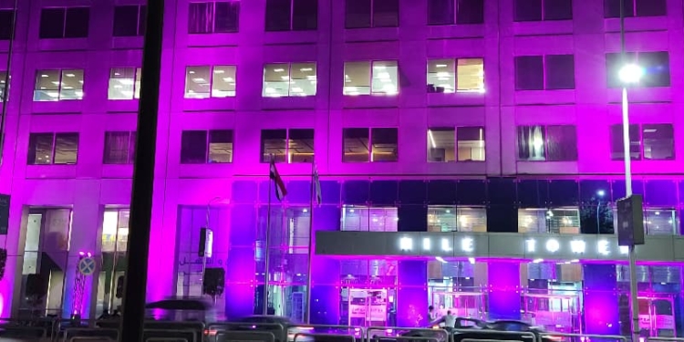 ميدبنك يشارك في شهر التوعية بسرطان الثدي بإضاءة مركزه الرئيسي باللون الوردي