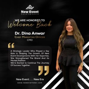 من جانبها قالت الدكتورة دينا أنور، رئيس قطاع التسويق بشركة نيو إيفنت للتطوير العقاري: “سعيدة بانضمامي مرة أخرى لفريق عمل شركة نيو إيفنت للتطوير العقاري، وسنسعى جميعًا لتحقيق خطة الشركة التسويقية والتكامل مع باقي القطاعات الأخرى لتحقيق الأهداف الاستراتيجية للشركة وتعزيز ريادتها بالسوق المصري”.