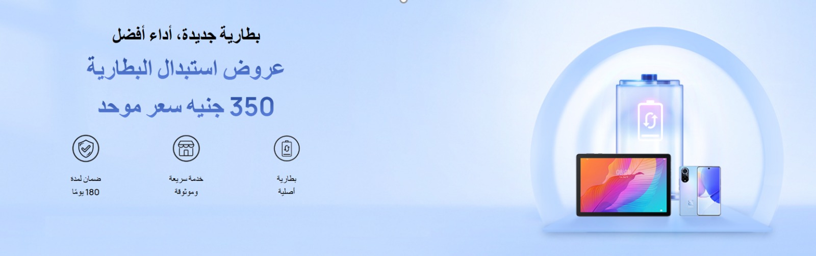 أعلنت شركة هواوي لأعمال المستهلك عن إطلاق حملة “استبدل بطاريتك” الجديدة لجميع مستخدميها، والتي تتيح استبدال بطاريات الهواتف والأجهزة اللوحية بأسعار تبدأ من 350 جنيه فقط، مع ضمان استخدام قطع غيار أصلية %100.