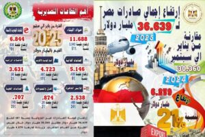 وقد ارتفعت قيمة الصادرات المصرية غير البترولية لأهم 5 دول مستوردة خلال الفترة من يناير حتى سبتمبر 2025 بنسبة 42 % لتصل إلى 14 مليار و 774 مليون دولار مقارنة بنحو 10 مليار و 379 مليون دولار خلال نفس الفترة من العام الماضي وبقيمة 4 مليار و 395 مليون دولار.