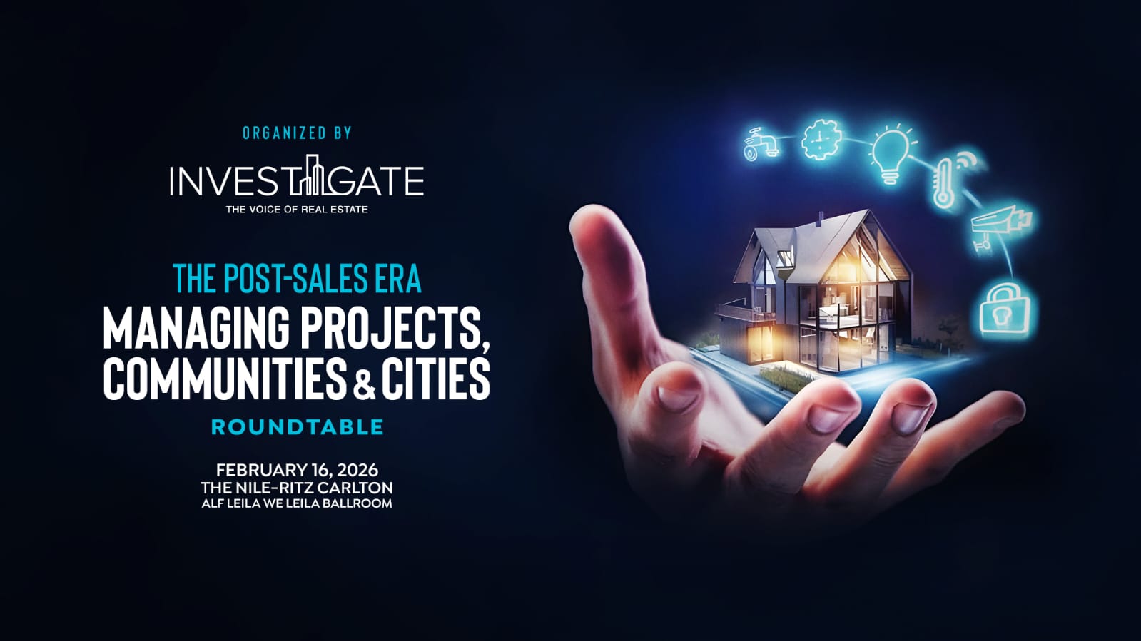 Invest-Gate launches its 27th roundtable Entitled “The Post-Sales Era: Managing Projects, Communities & Cities,” scheduled to take place on Monday, February 16, 2026, at 9:00 AM at the Nile Ritz-Carlton Hotel – Alf Leila We Leila Ballroom.